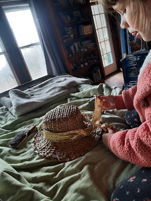 I am trying to get Meema to wear more fashion. (Sha always looks the same, with about a million sweaters.) So I am making a fancy hat for her...