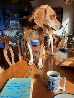 A photo of an undisciplined dog--that's why I took the picture. But when I looked at it, I had some second thoughts. Second thoughts about the book in the picture.