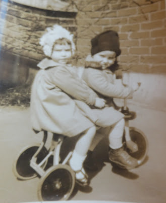 A scooter (?) built for two. Again, it could be my mother. Or not. She's very serious, whoever she was.