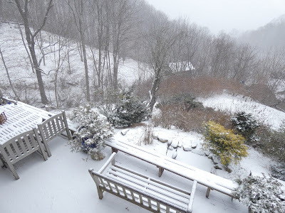 These pictures were taken at noon, as I returned from the grocery store. But it's not cold!