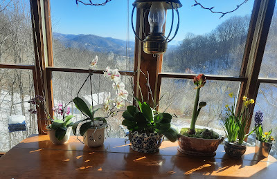 As of Friday noon, we have power and the water is still running. John has left his truck at the lower place, and the Kubota utility vehicle, with chains, can make it to our house. We have plenty of food and wood, should the power go out.