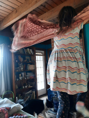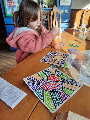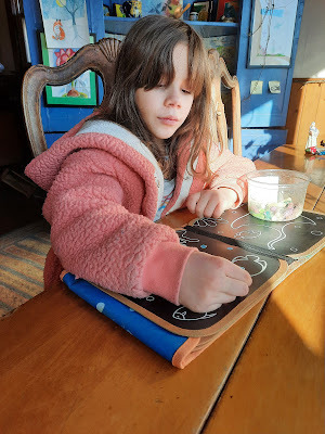 Monday was a snow day and I stayed with Meema and Grumpy. I organized the two shelves where lots of my games and art supplies and craft stuff is (under the castle people.) I found some things I hadn't played with in a long time like this coloring book Sandy gave me. When I was little, I just scribble in it but Meema wiped away the scribbles and now I am good at staying in the lines mostly.