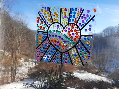 This is another fun thing. I stick jewels on this see through plastic, going by the pattern underneath.