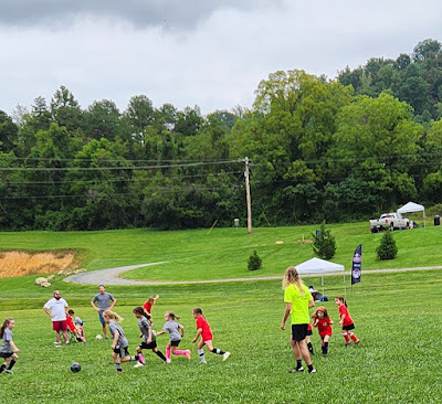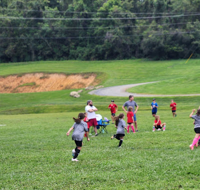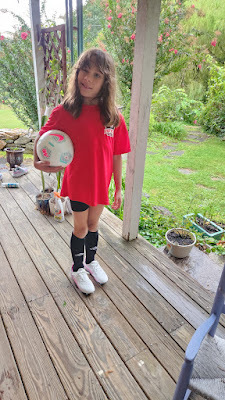 Josie has been signed for youth league soccer and she's excited about it. The first practice got rained out, but she was in the game on Saturday, despite not knowing much about it.