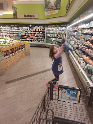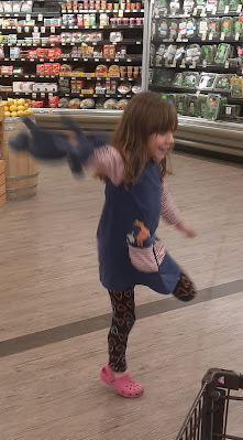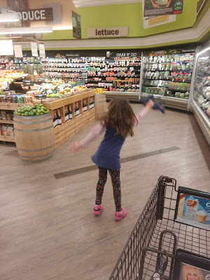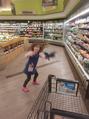 Meema and me went to the grocery store after school. The grocery store is a great place to practice dancing.