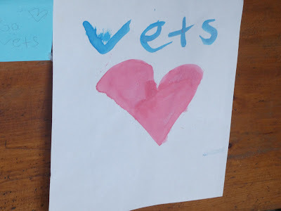 Josie's class learned about Veteran's Day and when I told her that Grumpy was a vet, she decided to decorate for the holiday.