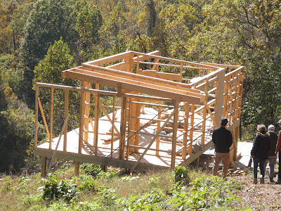 The rather tiny house that Justin and Gilberto are building is set a little below the top for protection from the wind. I assume it's meant as a vacation house--the road could be a real challenge in winter.