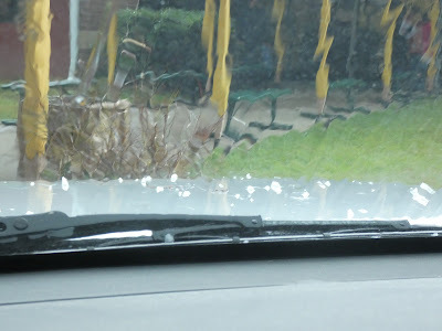 When the bell rang for school to be out, it was hailing! I didn't expect that! I caught some in my hand and Meema took a picture of it on her car. (The hail I caught melted right away.)