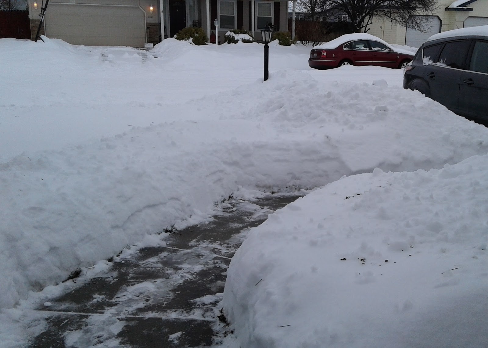 But now ... I'd like to pull out of my driveway without worrying I'll slide into the neighbor's car parked on his side of the street; I'd like to wear my cute Dansko shoes. I'd like to be able to go out and repair the fence to my garden area so my dogs will stop pooping in there.