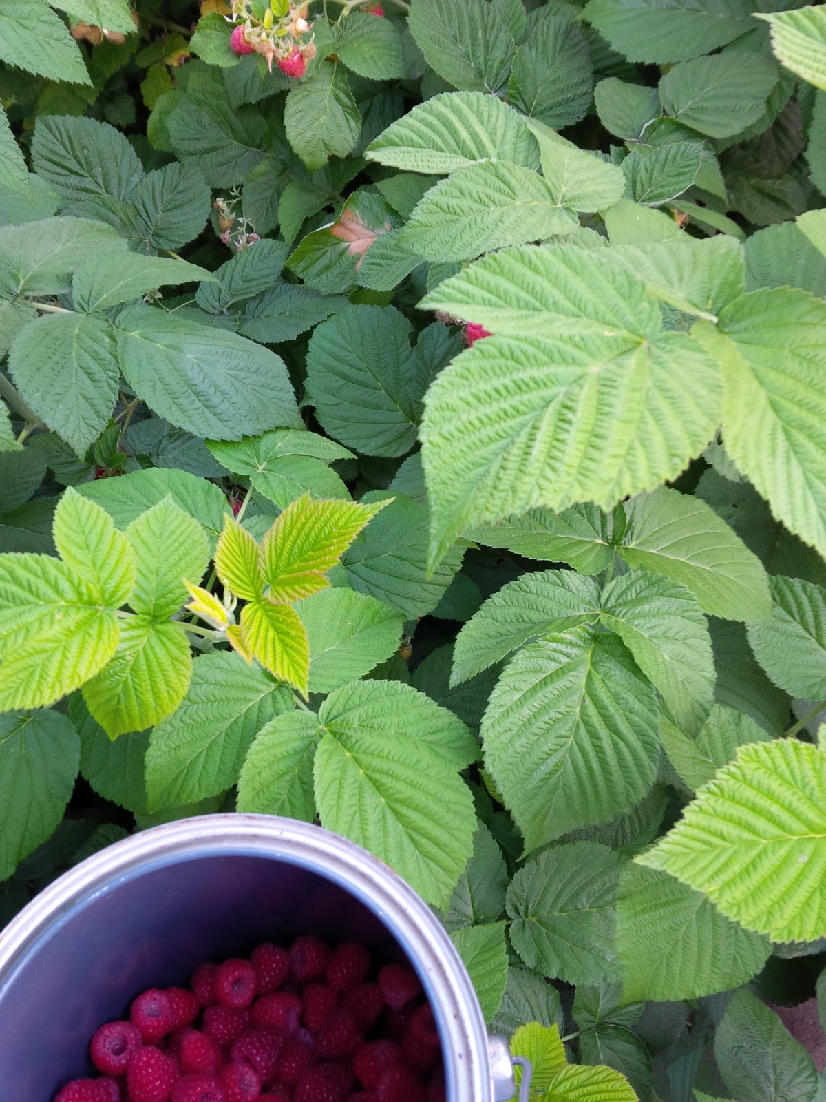 Together, the raspberry bush and I worked hard to preserve and harvest the crop. When I'd go out to pick berries, I'd take an empty paint can and wear it at my hip, secured by an old belt. By having the can hanging at my side, I could then use both hands to pick berries. That process made it much easier for me to pick efficiently.