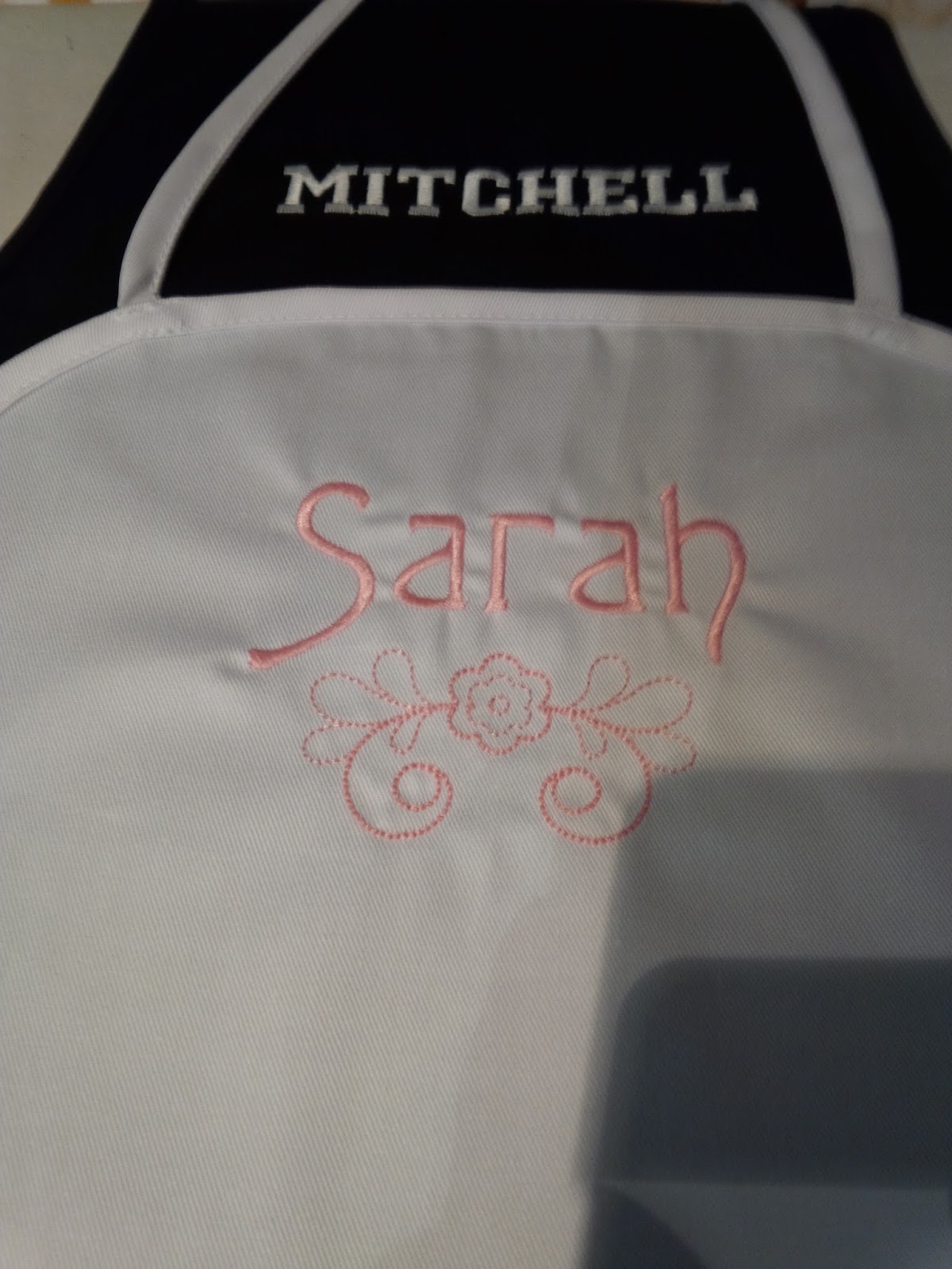 Embroidered aprons for the bridal shower.