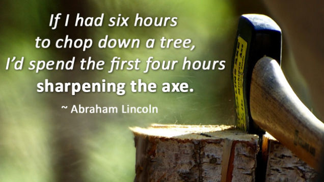 Plus, taking the time to visit the other blogs gives us all the opportunity to " sharpen our axes ." What? You've never heard of that phrase? Well, simply put, if you're only chopping down trees (aka writing books, screenplays, or blog posts) and not taking the time to sharpen your axe (aka learning from others, improving your skills, and reading books on the craft of writing) ... it will take you much longer to accomplish a worthwhile finished product than if you'd taken time to improve, refresh, or sharpen your skills first.
