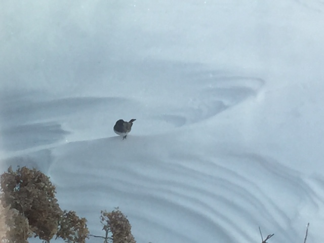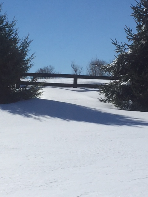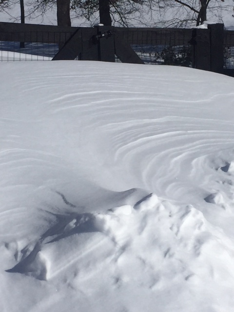 This pic and the next show the snow depth. Our fencing is a bit over 4 ft. Everywhere I stuck a measuring stick, I got confirmation that we got 3 ft of snow, plus deeper (4-5ft) drifts.