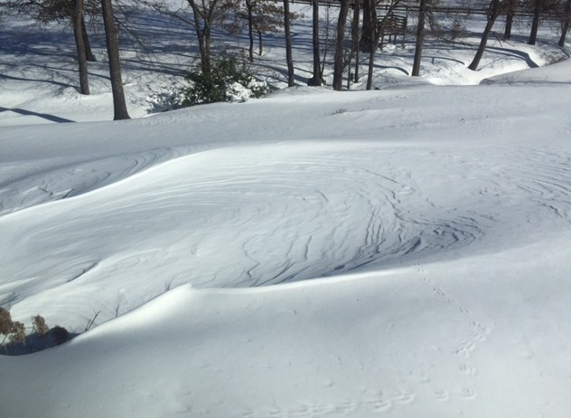 You can see how the winds created patterned snow dunes much like those made of sand.