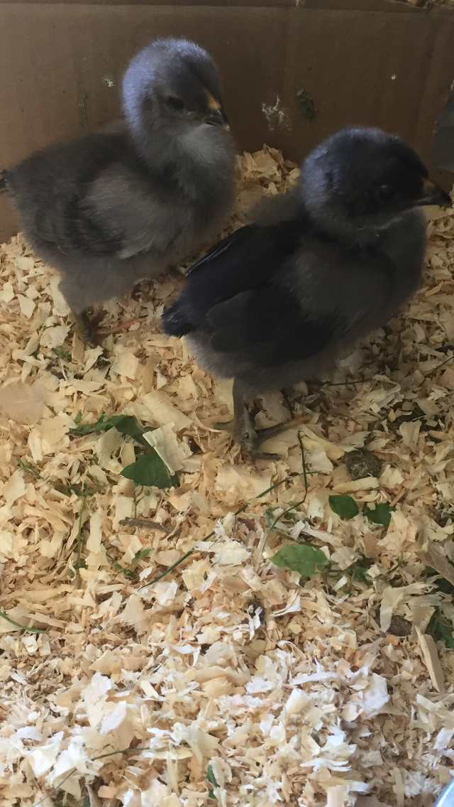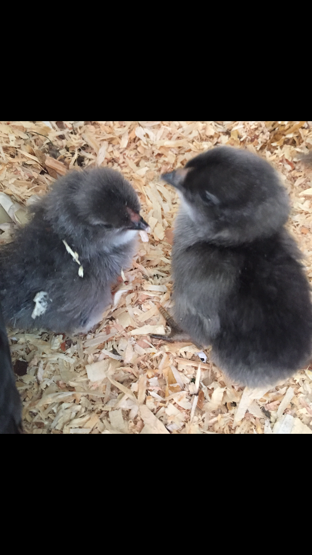 2nd babyNow, my roosters are French Black Copper Marans, which means that this chick...assuming she's a she...is an 'olive egger'. I'm really hoping 'she' ends up laying olive green colored eggs! Her mother's eggs are a light to medium shade of 'easter egger' green and dad comes from a breed that lays very dark brown eggs, so we'll see...
