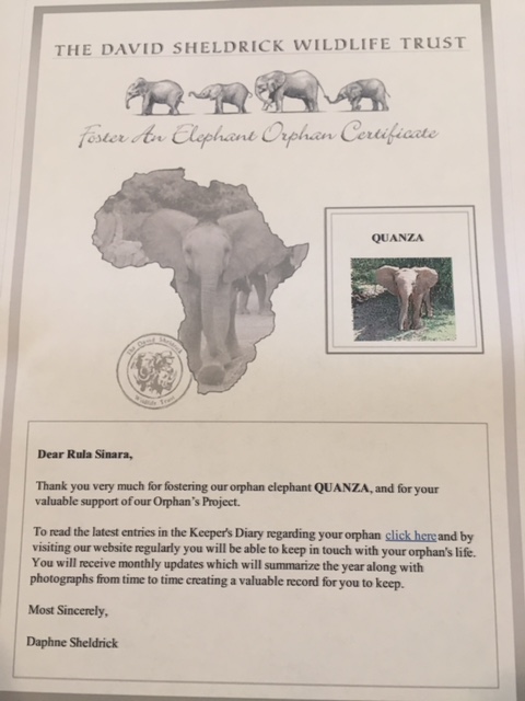 I've always loved elephants and I've always supported different wildlife organizations. Writing this series, including all the research I did on the ongoing battle against wildlife trafficking and poaching, drove me to want to do more. Since becoming one of my characters and moving to Kenya to help rescue elephants orphaned by poachers isn't feasible right now (though it would be a dream), I adopted/fostered one. Although my characters are totally fictional and not based on any 'real life' person, there are groups who, much like my Dr. Bekker and her Busara Elephant Research and Rescue Camp, dedicate their work to saving wildlife. One such amazing group is The David Sheldrick Wildlife Trust, founded by Dame Daphne Sheldrick in Kenya. Their ongoing work to rescue elephants is nothing short of amazing. The videos and stories you can find on their website says it all. And one of the programs they offer involves fostering. Raising elephant orphans requires supplies...food, medical care etc... On the DSWT website, you can find a list of all of their orphans, by age, and their individual stories. I wish I could have helped them all, but when I read Quanza's story, I couldn't walk away. I fostered Quanza, which means I'm helping fund her care but I also get monthly keeper updates and photos. You can see a little photo of her in my certificate pic above and you can read about her (just look up her name) and others here.