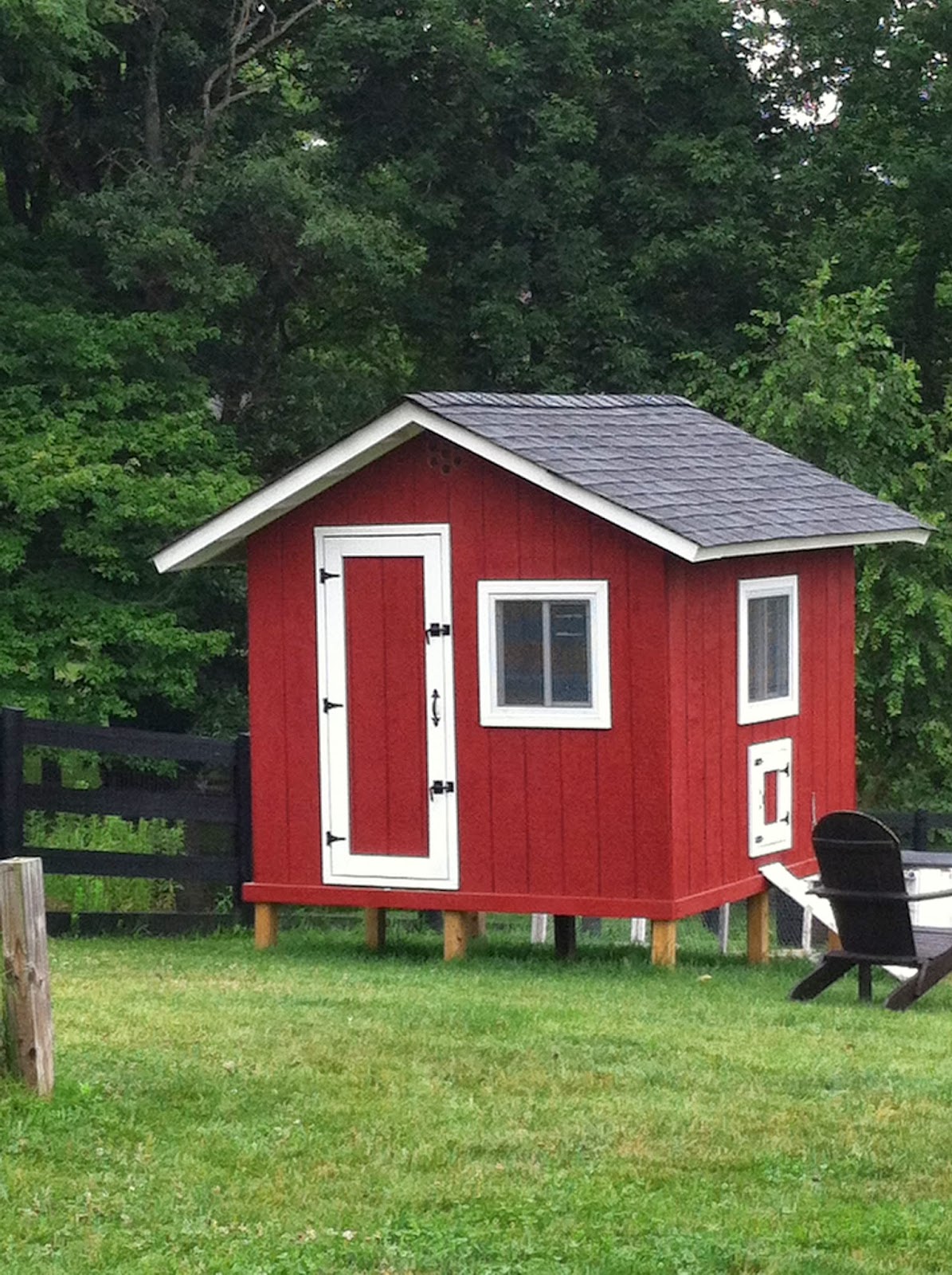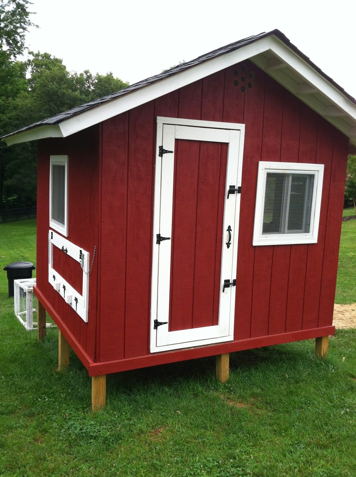If you recall, we decided to build a coop from scratch. Yes, I thought it would save money. No, it didn't. Well, it did if you compare what we made to buying an equivalent, but it wasn't the cheapest project. I just got all HGTV with it LOL. So here are a few pics summarizing the process. It's 8 x 8 with a sealed floor covered in sand that I scoop like kitty litter. We put in sand/sweet pdz filled poop boards under the roost and every window, eave, vent etc...is covered in 1/4 in hardware cloth to keep out predators. Lots of door locks too!