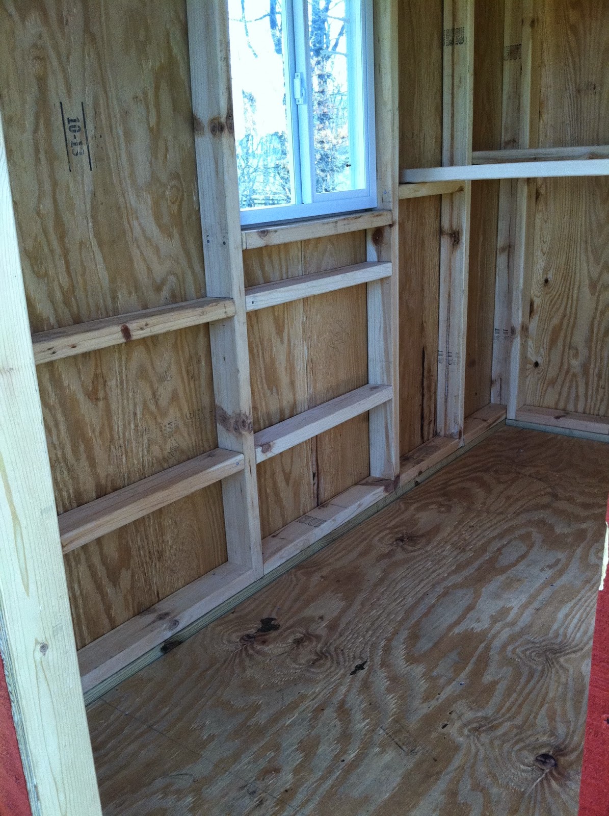 Taken when he was younger.We have Easter Eggers, Speckled Sussex, Plymouth Barred Rock, Cuckoo Maran, Buff Orpington and Black Australorps. I'd have to say that my favorites are the EE and Barred Rocks. This spring, I'd love to add some Rhode Island Reds to our family.If you recall, we decided to build a coop from scratch. Yes, I thought it would save money. No, it didn't. Well, it did if you compare what we made to buying an equivalent, but it wasn't the cheapest project. I just got all HGTV with it LOL. So here are a few pics summarizing the process. It's 8 x 8 with a sealed floor covered in sand that I scoop like kitty litter. We put in sand/sweet pdz filled poop boards under the roost and every window, eave, vent etc...is covered in 1/4 in hardware cloth to keep out predators. Lots of door locks too!
