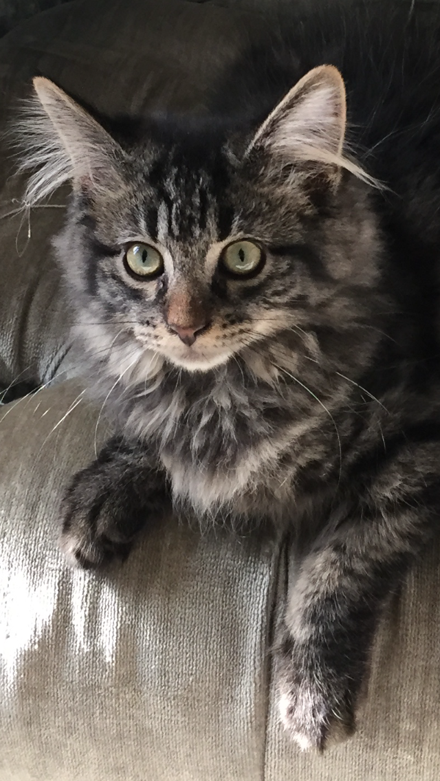 Well, they've just been joined by a little boy who looks like a Maine Coon mix. My teen named him Grimalkin (Grim for short) after the character in The Iron Fey series by Julie Kagawa (Harlequin Teen).