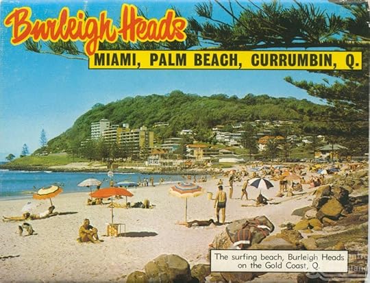 My favourite beach is Burleigh Heads, it’s sheltered by a headland, but more than that, it was the very first place I remember living. Burleigh was a little seaside village. My folks were not long married and they lived in a block of flats up on the headland where you could see the beach. My mother had a part time job at the local supermarket.