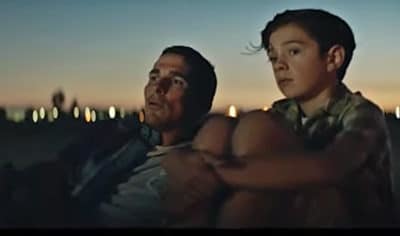 Christian Bale as Ken Miles with his son Peter. One of the tender highlights of the film that paints the characters are fully fleshed out human beings.