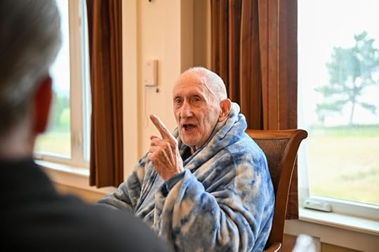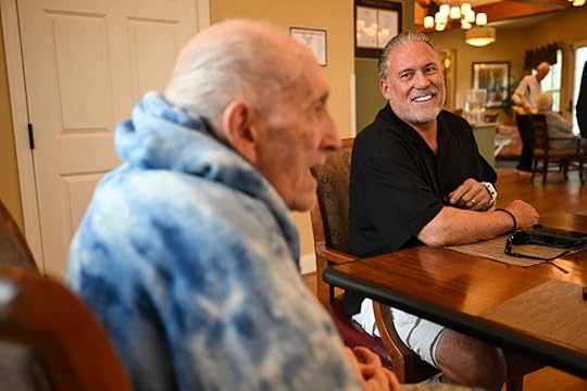Bobby Howfield, left, and his son, Ian Michael Howfield, talk with a reporter about Bobby’s time as a place kicker for the Denver Broncos in the late 1960s as they relax at a retirement home in Highlands Ranch on July 31, 2025. (Stephen Swofford, The Denver Gazette)