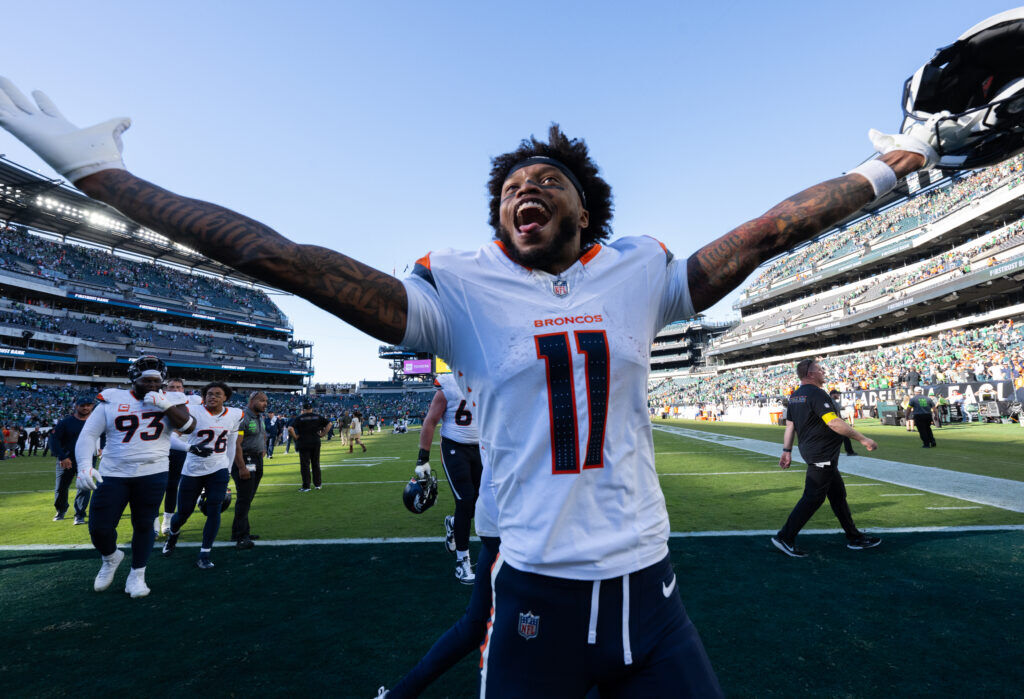 Denver Broncos wide receiver Troy Franklin (11) celebrates as he and his teammates leave the field after the Broncos defeated the Philadelphia Eagles 21-17 Sunday, Oct. 5, 2025, at Lincoln Finanacial Field in Philadelphia, Pa. (The Gazette, Christian Murdock)“He’s a competitor,” coach Sean Payton said of Nix. “There were a handful of plays in the first half that I know he’d want back. … But that all being said, man, you can feel his leadership when it matters. And then you can feel the confidence with his teammates when it matters. So, he played exceptional in the second half.”