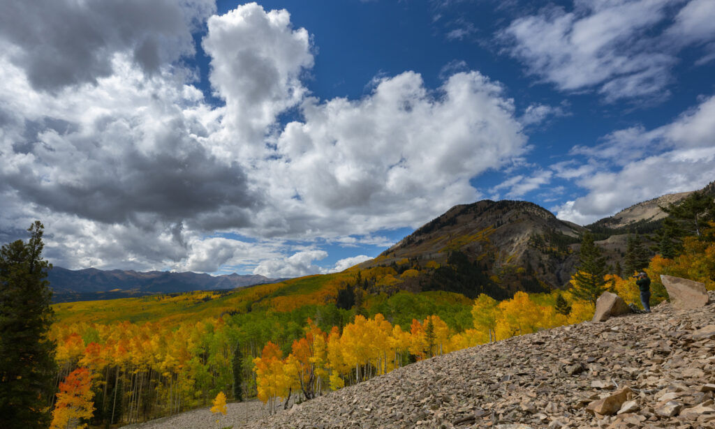 A photographer captures the multicolored aspens on Ohio Pass between Gunnison and Kebler Pass Monday, Sept. 29, 2025. (The Gazette, Christian Murdock)