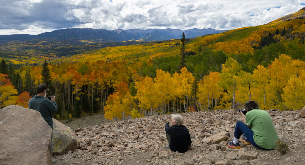Photographers capture the multicolored aspens on Ohio Pass between Gunnison and Kebler Pass Monday, Sept. 29, 2025. (The Gazette, Christian Murdock)