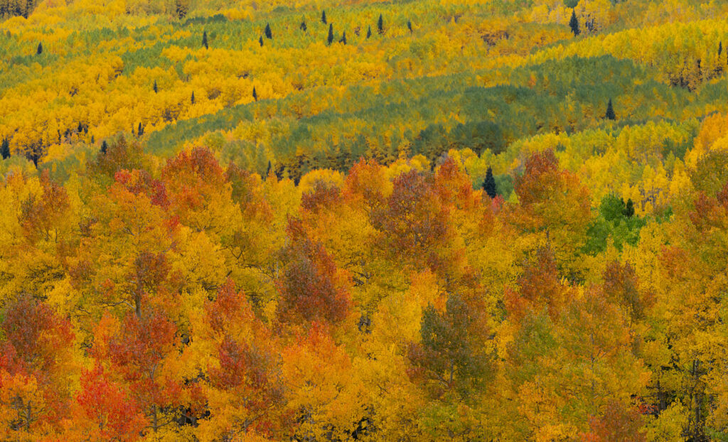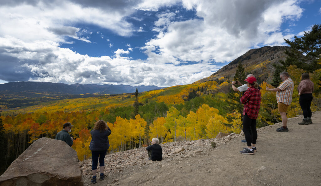 The multicolored, turning aspens decorate the landscape on the west side of Kebler Pass Monday, Sept. 29, 2025. (The Gazette, Christian Murdock)