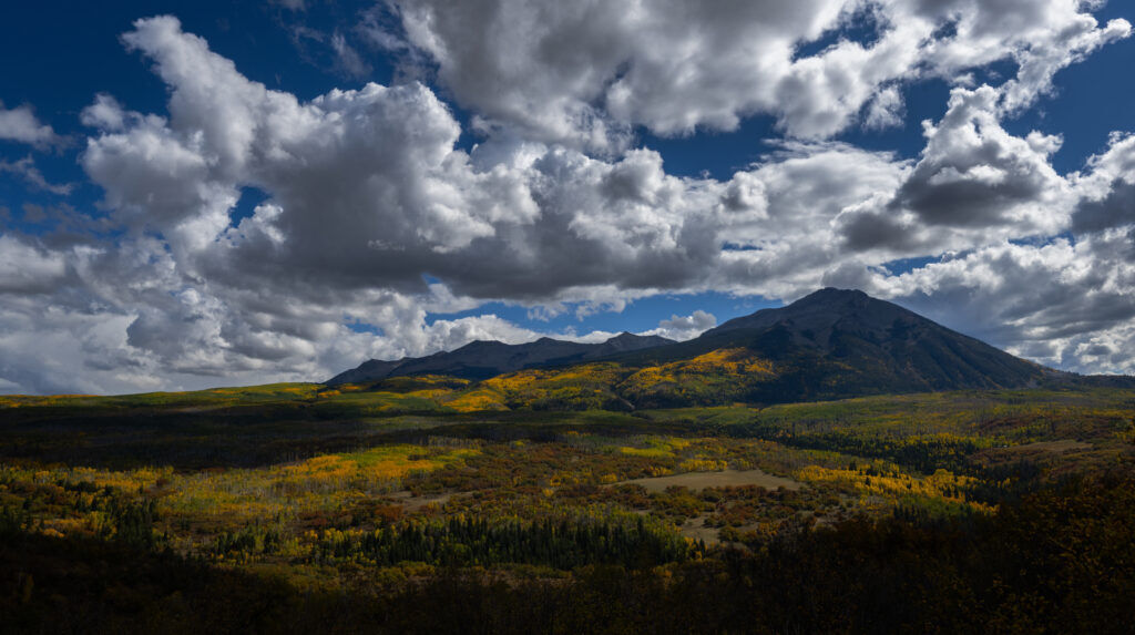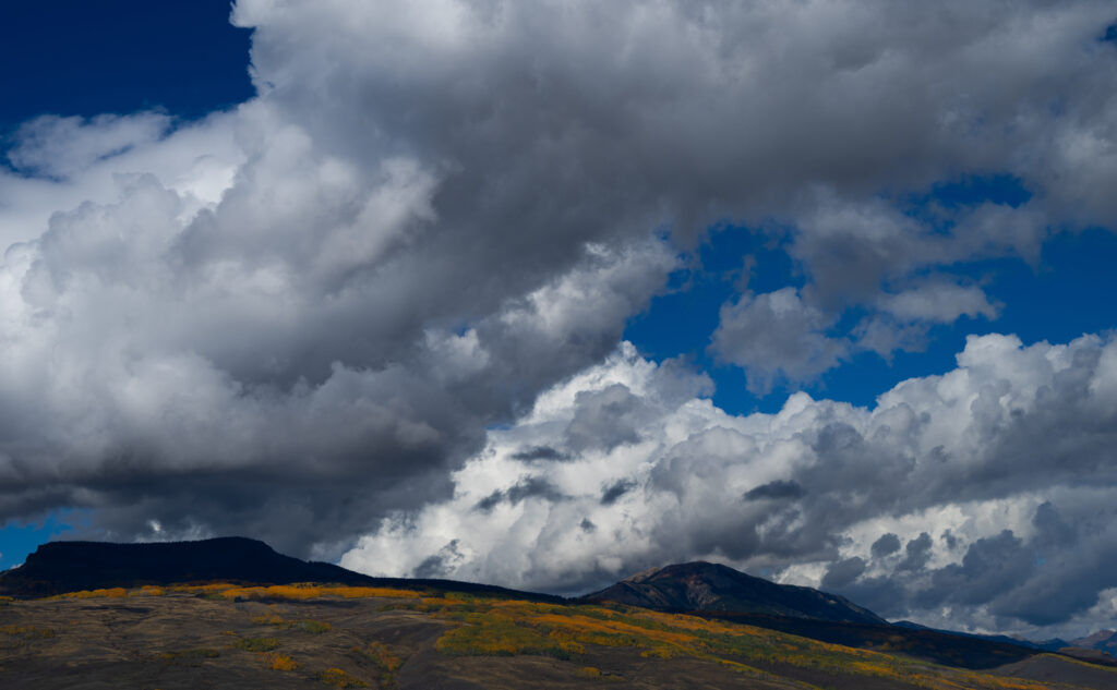 Storm clouds build over the turning aspen south of Crested Butte, Colo., on Monday, Sept. 29, 2025. (The Gazette, Christian Murdock)
