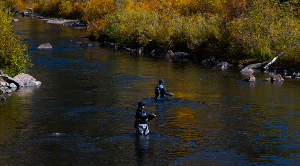 Anglers fish Taylor River below the reservoir Monday, Sept. 29, 2025, as the fall colors reflect on the water. (The Gazette, Christian Murdock)