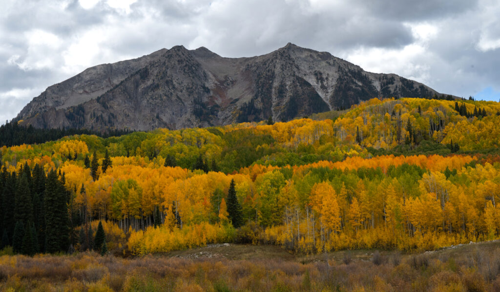 The fall foliage colors the valley below Kebler Pass on Monday, Sept. 29, 2025. (The Gazette, Christian Murdock)