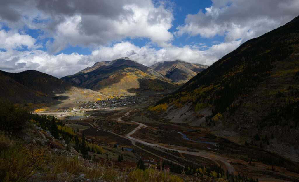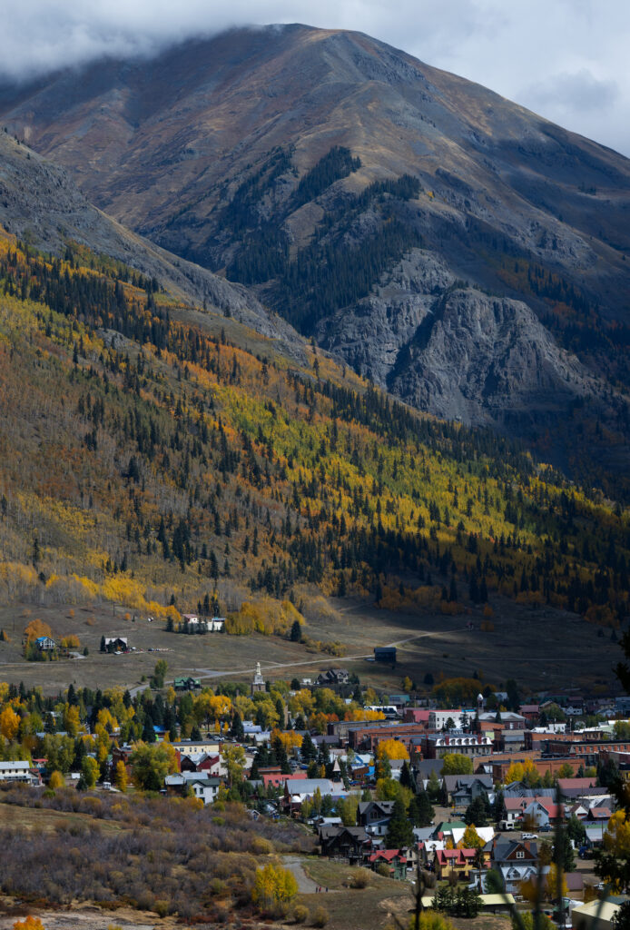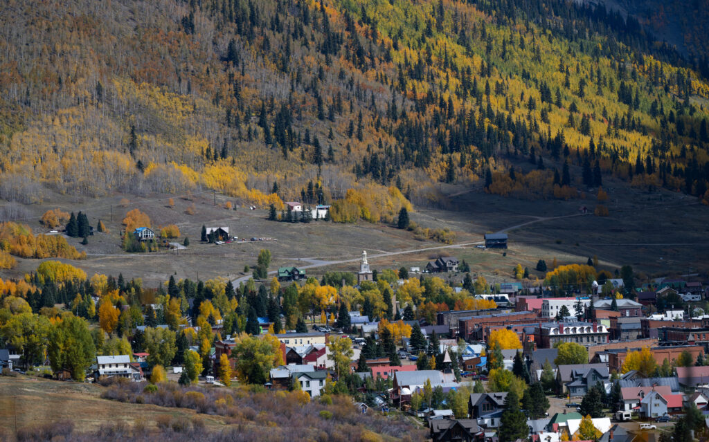 The turning aspens surround the city of Silverton, Colo., in the San Juan Mountains on Tuesday, Sept. 30, 2025. (The Gazette, Christian Murdock)
