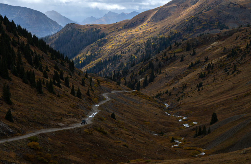 An off-highway vehicle makes its way toward 12,800-foot Engineer Pass in the San Juan Mountains of Colorado on Tuesday, Sept. 30, 2025. (The Gazette, Christian Murdock)