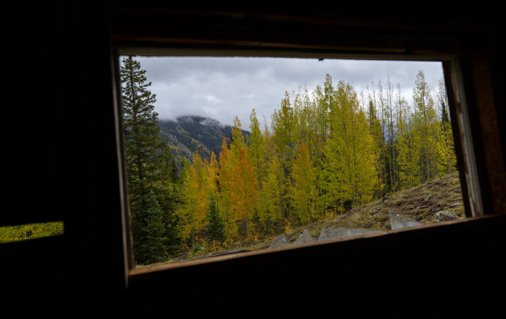 The changing aspens are framed by the window of an old cabin on Molas Pass south of Silverton, Colo., in the San Juan Mountains on Tuesday, Sept. 30, 2025. (The Gazette, Christian Murdock)
