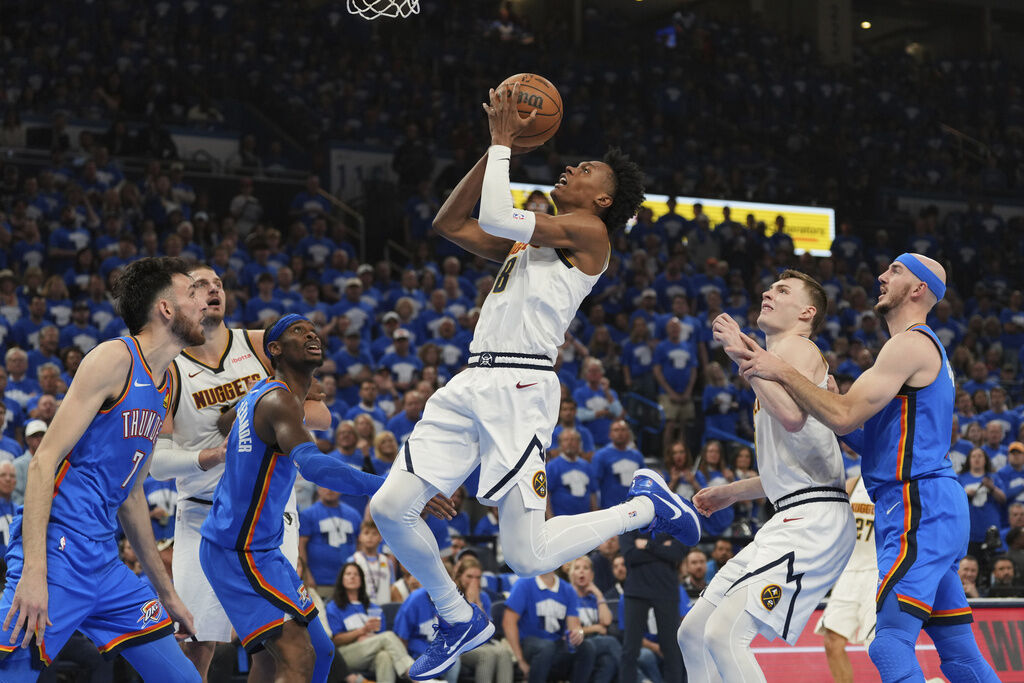 Denver Nuggets forward Peyton Watson (8) shoots as Oklahoma City Thunder’s Chet Holmgren, left, Shai Gilgeous-Alexander (2) and Alex Caruso, right, look on in the first half of Game 7 in the Western Conference semifinals of the NBA basketball playoffs, Sunday, May 18, 2025, in Oklahoma City. (AP Photo/Kyle Phillips)If the Nuggets don’t reach a contract extension with Watson before the season starts, he and every other player from his draft class in a similar situation will become restricted free agents next summer. That means teams with more cap space could sign him to a deal the Nuggets might not be willing, or able, to match, especially if his training camp breakout translates to the regular season.