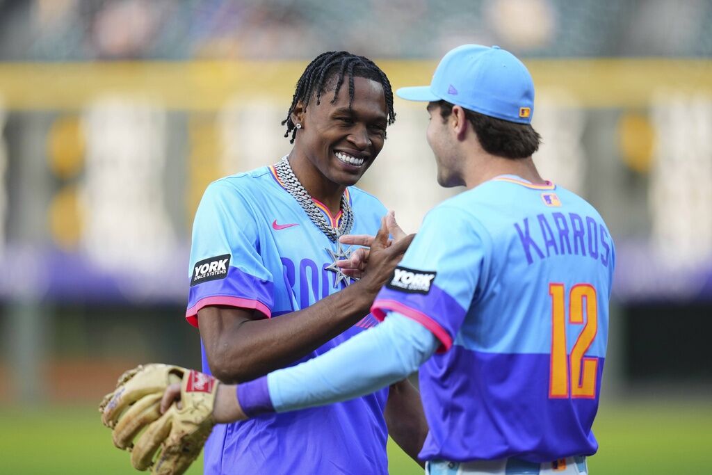 Denver Nuggets’ Peyton Watson shakes hands with Colorado Rockies’ Kyle Karros after throwing out the first pitch before a baseball game between the Colorado Rockies and the San Diego Padres Friday, Sept. 5, 2025, in Denver. (AP Photo/Jack Dempsey)The same wingspan that helps Watson on the defensive end complicates his shooting mechanics on the other. There’s more room for error, Watson has said. Wright and Watson worked to remove any unnecessary motion or dip with the ball as he gets into his shot in hopes of continuing a positive trend. Watson improved his 3-point percentage from 29.6% in his second NBA season to 35.3% last season. He shot 36.8% in his most extensive playoff action last season.