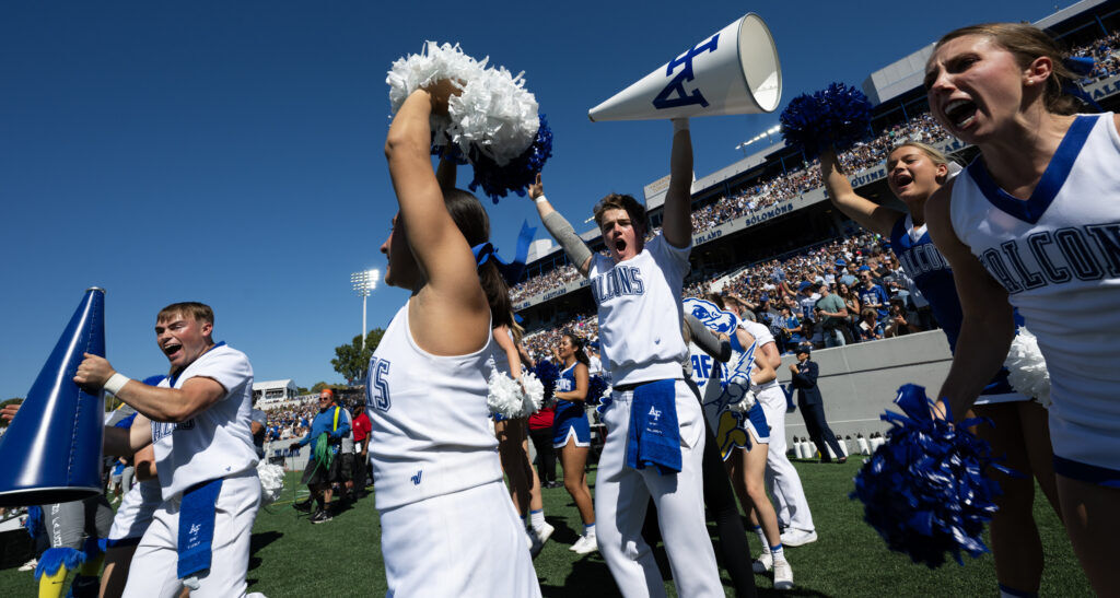 The Air Force cheerleaders celebrate after The Falcons scored against Navy during the first half Saturday, Oct. 4, 2025, at Navy-Marine Corps Memorial Stadium in Annapolis, Md. (The Gazette, Christian Murdock)Bold prediction, Part II: The Falcons make a bowl game