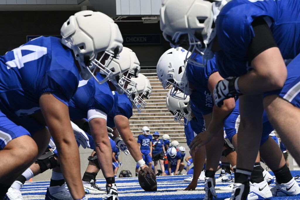 Air Force linemen work at a practice in August. (BRENT BRIGGEMAN, THE GAZETTE)Key stat, Part 1:5