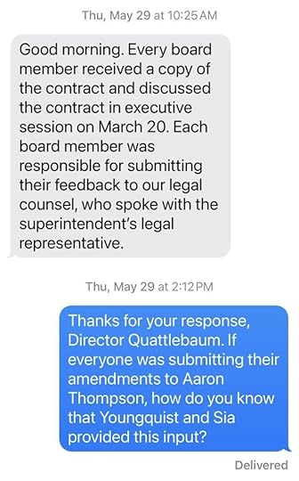 A screenshot of Director Michelle Quattlebaum’s May 29, 2025 response to an inquiry into the process for amending the superintendent’s contract. (Photo by: Nicole C. Brambila/The Denver Gazette.)“Dr. Marrero’s contract extension process was done in compliance with the Colorado Sunshine Law,” Bill Good, a district spokesperson, said in an email.