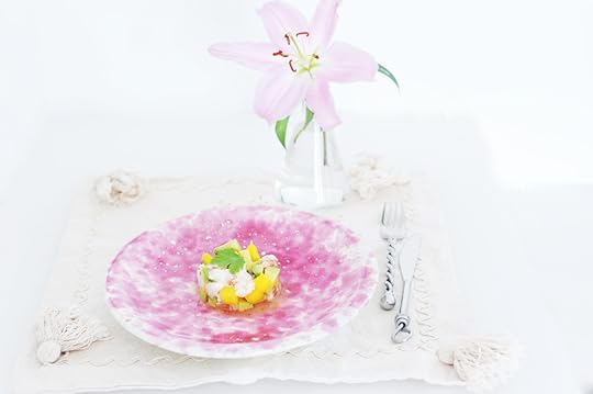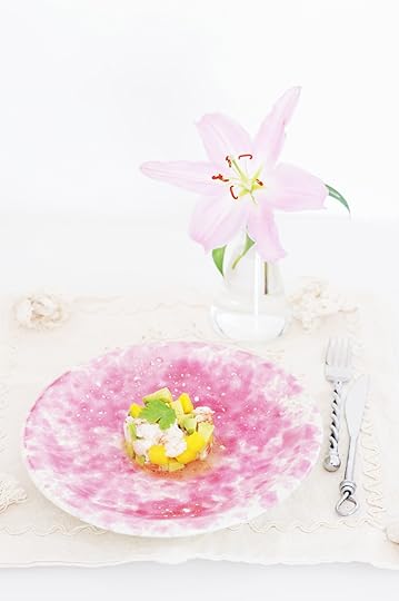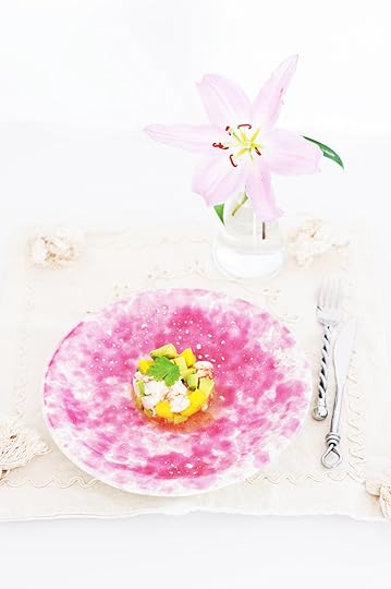 Tartare di Gamberoni, pesca tabacchiera, mango e papaya