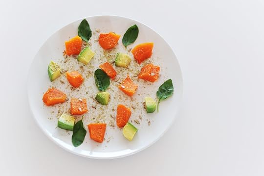 Insalata di Zucca, Avocado e Menta con semi di girasole e zucca sbriciolati con lievito alimentare