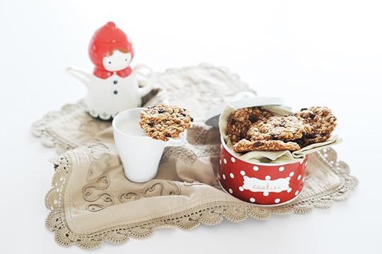 Uhm. Ieri i Muffin con Avena e Mirtilli tratti dal libro “Fai come Isa” di Isa Chandra Moskowitz e oggi una cosa diversa (regia può fare partire le risate registrate? Grazie!). Una Ricetta Vegana tratta dal libro “Fai come Isa”. Un colpo di scena incredibile, nevvero? E questa volta biscottiiiiiiii! Poi prometto che la smetto. E comincio con quelle salate. No basta! Devo disintossicarmi sul serio da Isa. Sta prendendo una brutta piega questa cosa, soprattutto perché li assaggio (intendo l’intero vassoio) e mi piacciono pure. Mai successo! Schizzinosa e rompiscatole trovo sempre qualcosa che non mi convince. Che non mi piace così tanto da. Che blablablabla. E invece tra i muffin con avena e mirtilli e questi biscotti ho capito che amo Isa d’accordo ma che potenzialmente potrebbe essere la mia rovina. Sono biscottoni che ricordano le barrette fatte su RunLovers (te le sei perse? Ce ne sono cinque qui e una con riso e cioccolato qui. Tutte buonissime e da provare). Croccanti come piacciono a me (e al mio papà), scrocchiano in bocca che è una meraviglia e mentre si sbriciolano dici uhmmmgnamcielosantocielognam. Bofonchiando, godendo e sputacchiando. Un’immagine poetica, insomma. Perfetti per colazione e merenda credo raggiungano la massima espressione dell’idillio inzuppati nel latte. Nel mio caso latte di mandorla freddissimo macchiato da caffè al cioccolato (nessuno dica che il caffè dalle note al cioccolato sia disgustoso! Sopporto già il Nippotorinese santo cielo. Lui che beve amari intensi potenza sedici) e via verso il paradiso gustativo. Voglio provarli in tutti i modi e con il cioccolato fondente. In realtà il mio intento è ritornare 140 kg mangiando questi biscotti e i muffin di ieri. E poi dimagrire di nuovo. E poi ingrassare di nuovo sempre con questi biscotti e questi muffin.