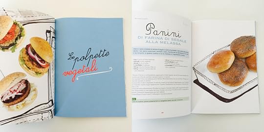 La maggior parte degli hamburger/polpette è a base di legumi proprio perché l’intenzione è quella di renderli un vero e proprio pasto bilanciato con le verdure, proteine vegetali e carboidrati. Sono ben bilanciati e ricche anche di diversi elementi. Senza e con glutine possono essere declinati e modificati in tantissime varianti e basta sempre la solita fantasia pilotata dal proprio gusto. La base dei legumi può essere personalizzata come si vuole. Un hamburger di ceci infatti non sarà sempre lo stesso se mixato con diversi ingredienti (quella dei fagioli con la barbabietola ad esempio la trovo un’adorabile genialata che non ho mai provato e che voglio replicare al più presto). Le creme da spalmare, che si vogliano mettere o meno, conferiranno un sapore sempre diverso insieme alle onnipresenti verdure presentate nelle più svariate varianti (si può dire svariate varianti senza risultare ridondante? Ma che dico! Io sono ridondante! E pure rintronata, vabbè). Un libriccino adorabile da possedere e coccolare. Un bignami sull’hamburger vegan, detto da una che di questi volumi ne ha a bizzeffe e pure super-iper-stra-mega-prufesciunal. Ma questo è adorabile. Tanto che ti viene voglia di abbracciarlo. Perché in tutta la sua piccolezza -e a un prezzo davvero ridicolo ribadisco per contenuti/foto/illustrazioni/simpatia/fantasia– riesce a essere un volumone da idolatrare. Mi piace la dispensa indispensabile che in poche righe ti consiglia in un sol colpo la farina di ceci e mais ma pure quella di riso, farro, grano saraceno e chi più ne ha più ne metta. Niente perdite di tempo e dritti al sodo, per gente che non ha voglia di perder tempo in chiacchiere (io non ce la faccio a non perdermici. E’ una malattia santotofu!) e vuole agguantare in men che non si dica un bel Veggie Burger caldo caldo!