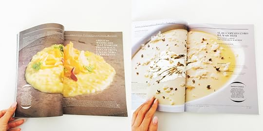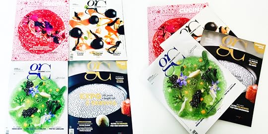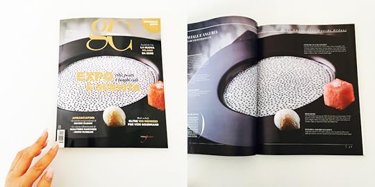 Già dallo scorso anno (o addirittura dal 2013? La vecchiaia è una brutta cosa, mi si perdoni) ho il piacere di sfogliare questa rivista che indubbiamente è tra le più raffinate e poetiche. Il prezzo della singola copia è di circa sei euro e gli arretrati si trovano a dodici, l’abbonamento per il 2015 sta intorno ai 42 euro. Economica, come tutta la linea, non è ma si tratta chiaramente di qualcosa per cui vale spendere, eccome, la cifra. Raramente rimango colpita così dall’estetica di una rivista e le copertine sono un piacevolissimo massacro visivo per l’iride tanta è la bellezza. Molta pubblicità -a parte la cucina spesso di design architettonico perché è connubio inscindibile- ma non fastidiosa come in altre. In questo momento ho tra le mani il numero di Maggio (preso così a casaccio, sì) che dedicava già gran parte di tutto all’Expo. Sempre in copertina campeggiano le ricette sorprendenti di Oldani e le visioni illuminanti di Gualtiero Marchesi e Iginio Massari con un Made in Italy che promette oltre 100 indirizzi per veri gourmand e Food & the city che è la nuova Milano da bere. L’articolo di Oldani si intitola “Stasera Caviale” e celebra per noi e l’Expo un D’O diverso, capace di sposare ingredienti gioielli come l’oro, l’ostrica e il foie gras senza tradire una filosofia che fa della democrazia, accessibilità e sostenibilità la propria cifra stilistica. Il testo è tradotto in inglese per permettere a tutti di poter usufruire visivamente e linguisticamente di questo bellissimo numero. L’immancabile e celeberrimo riso con zafferano, firma di Oldani, con la foglia d’oro “Sì ho copiato l’oro da Marchesi”. Il discepolo lo adopera su una suadente royale di foie gras, ingentilita da rafano e pepe. Ostrica, midollo e zabaione, un biscotto di carota con al centro il guscio dell’ostrica e lo zabaione con le scaglie di sale. E poi il Caviale e Anguria, che è poi la splendida copertina del numero. Si tratta di cipolla, panna, chiodi di garofano, foglie di alloro, bacche di ginepro, burro, vino, caviale Asetra con cubi di anguria e quaglia pochè. Si continua con Pavlova di salmone e caviale di limone. Insomma potrei pure fermarmi qui, no? Non è -e pare lapalissiano- una di quelle riviste che sfogli per dire: e vediamo che mi consigliano di cucinare questa settimana, va.