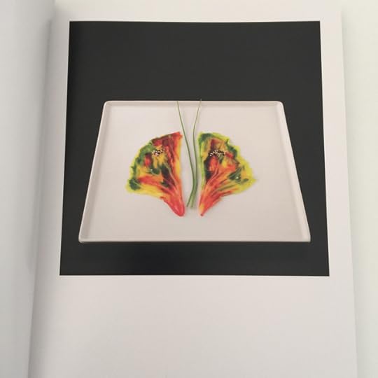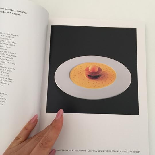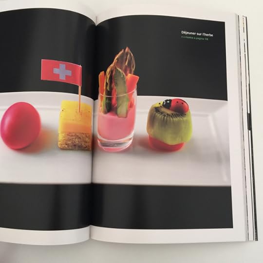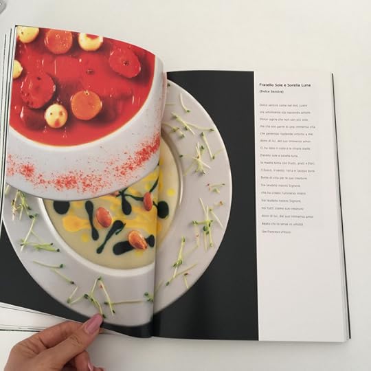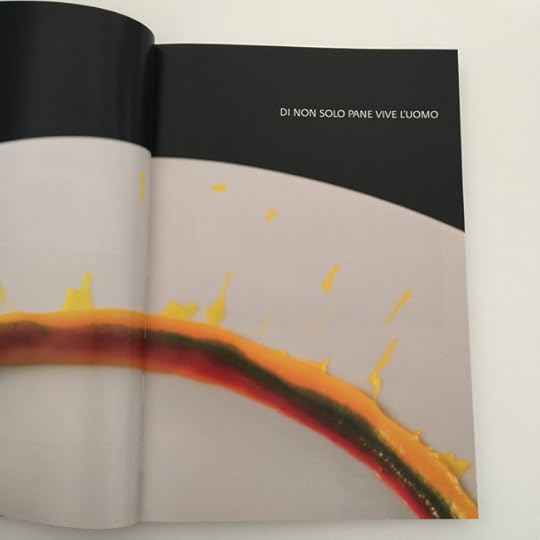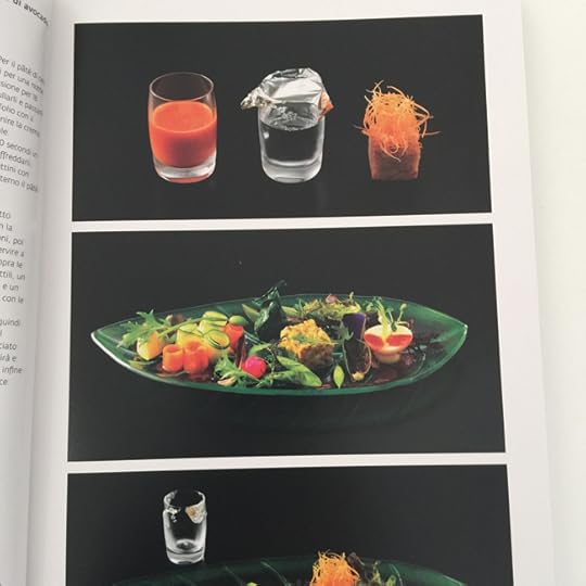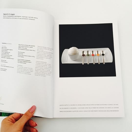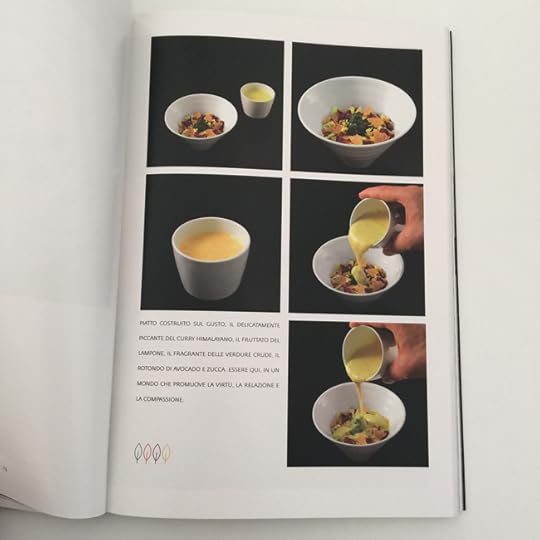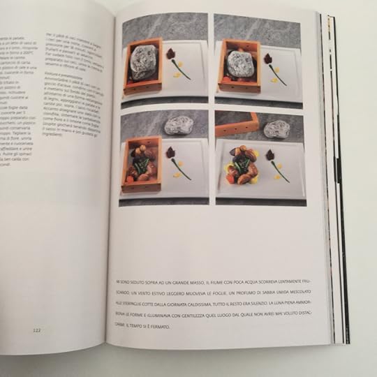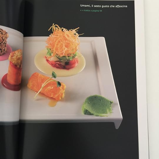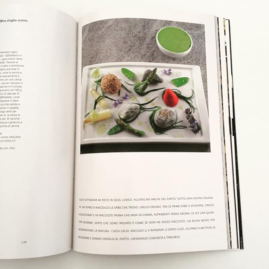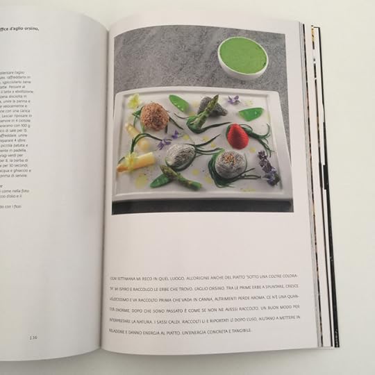 Una “semplice insalata di mare” con insalata riccia, belga, carote, sedano verde, taccole, pomodori, mozzarella, foglie di levistico e petal di rosa diventa un calice di magia. Ci sono foto macro a doppia pagina che ti stupiscono come quando fai click sulle ali delle farfalle e non puoi che sbalordirti intontito davanti all’immensa bellezza della natura. Ai più piccoli segreti e sfumature. Amo la costruzione del Nuovo Giorno a pagina 44: tre verdure di patè, asparagi, spinaci e finocchio con pesto di aglio orsino ed emulsione di arancia. Costruzioni di piatti cubisti e minimalisti. E’ la prima volta che mi trovo davanti a qualcosa di colossale e spettacolare, dopo Ducasse. Non mi era mai successo di dire: Piatti più belli di quelli di Ducasse. Ci aveva pensato Nobu a darmi quella sensazione di linearità e sconfinata semplicità travolta da una stordente complicità (sì. Un po’ contorto ma proprio così) ma sinora Niente e dico NIENTE ha battuto Leemann. Umami, il sesto gusto che affascina: raviolo di cavolo cinese, cilindro di giovani rape e sesamo, sushi di orzo e avocado, tagliolini di konbu e daikon con gusti orientali che tutti amiamo. Paginone centrale e foto di rara bellezza dove si mischiano colori e consistenze che sembra quasi di sentirne il sapore. Paradisiaco.