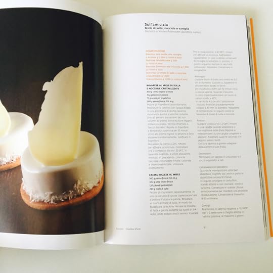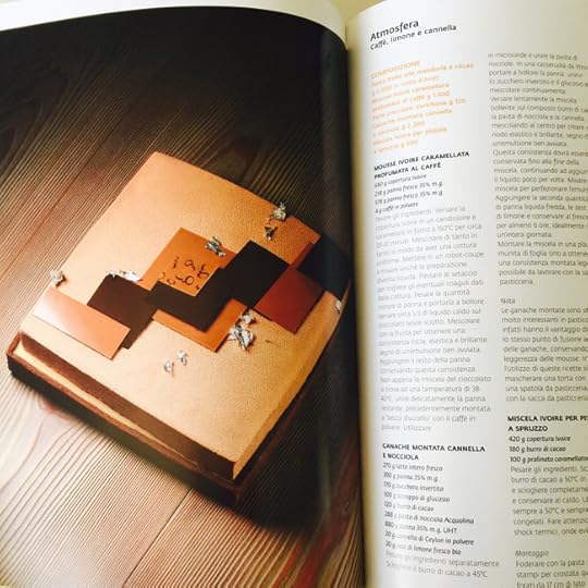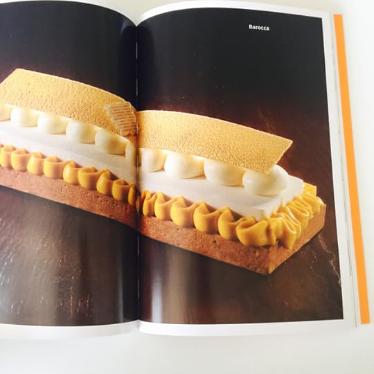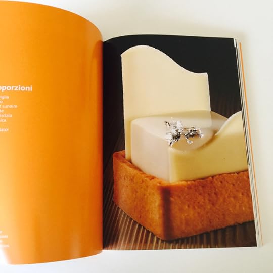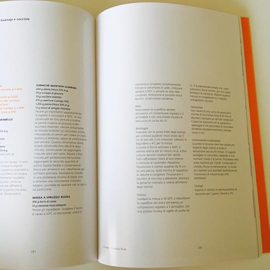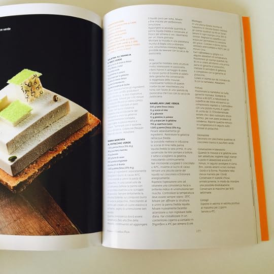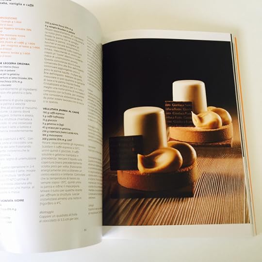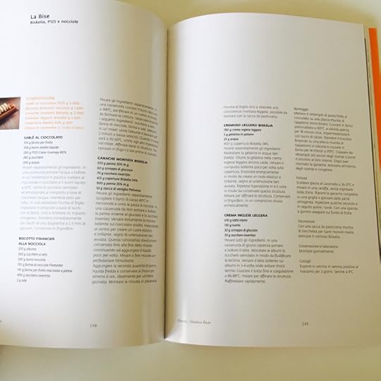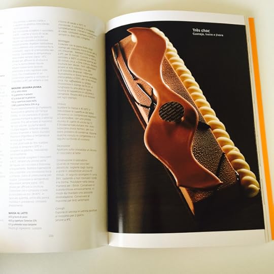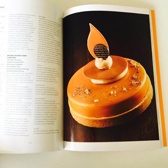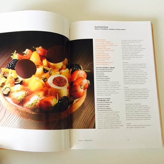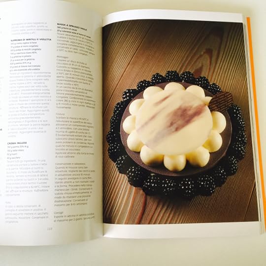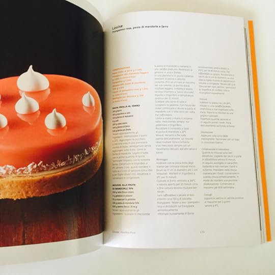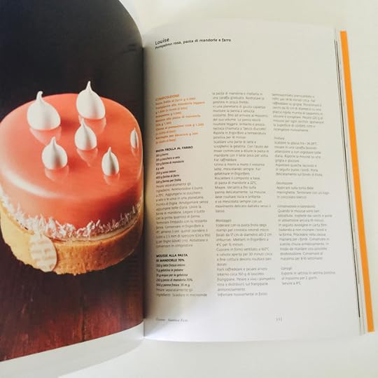 Non sono certo delle crostate che dici: “ma sai che ti dico ne faccio una di pomeriggio, va”. O per meglio dire. Potremmo pure dirlo io e te ma, per quanto mi riguarda, dubito fortemente che la mia possa essere anche solo vagamente somigliante per struttura, estetica e gusto a uno di questi capolavori. Dovrei filmarmi quando sfoglio questi libri. Gli occhi sbarrati tipo lemure (ma anche di quelle scimmiette bicolore di cui, ovviamente, non ricordo la specie. Potrei dire bicolorus bipides scimmiettam a ben pensarci. Chi controllerebbe mai?) e una coroncina di cuoricini a mo’ di aureola che orbita sul capo. Quando leggo zucchero invertito mi viene sempre un brivido lungo la schiena. Con il libro di Fusco brividi se ne possono avere quanti più se ne immaginano. Un po’ come farsi un giro sulle montagne russe con triplo salto mortale e tuttiatestaingiùsottacqua per qualche secondo. Hèlice, Bahibe arancia amara e cacao; che se la guardi bene dici d’accordo è solo una pasta frolla alle mandorle e cacao, della marmellata di arancia, della ganache Bahibe e dell’arancia candita. E che ci vuole? Poi basta tornare un attimo sul pianeta terra, fissare la foto a pagina 139 e riflettere. Puoi fare solo una cosa. Appoggiare la guancia sulla foto, ringraziando l’editore per averla scelta così lucida e fresca che d’estate è sempre bello avere a che fare con pagine così, e sussurarle (alla foto sì) parole d’amore. Venerandola come è giusto che sia. Strappare la pagina e portarla con sé a mo’ di santino nel portafogli, poi con calma si può sempre fare.