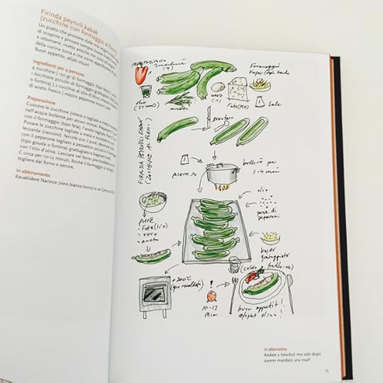 Tutto molto minimal ed essenziale. Ci sono le Ricette con titoli fantasiosi e non e pure un indice analitico dei Designer. Si parte con un timballo di Spaghetti con sauté di vongole altrimenti detto Timpano di Scammaro e si prosegue con una carrellata variopinta: Sole di scarola, Zucchine con formaggio al forno (Firinda Peynirli Kabak ovvero un piatto turco date le origine del Designer), Teoria di una torta verde, Cartoccio mediterraneo, Archeo gallette, La cecina rivisitata e Il cocuzzolo dell’Etna. Pane ai sette cereali, Torta Umbra, Lasagne al ragù di pesce con gamberi, Bassotti bird temple, Sformato di broccoli fiolari, Timballo di riso con bisi e salsiccia e Funghi al cartoccio con Butter Shoyu. Ci sono pure un po’ di pagine adorabili con le righe per gli appunti personali, che sono sempre quel quid che mi entusiasma. Nessuno mi chieda perché. Basta mettere due pagine per scrivere gli appunti e sono felice. Che poi questi appunti non li prenda mai nel libro è un altro discorso.