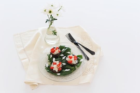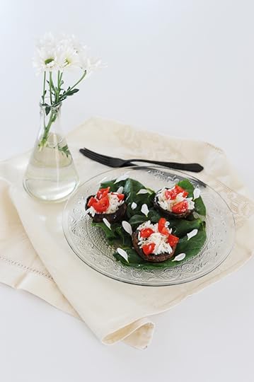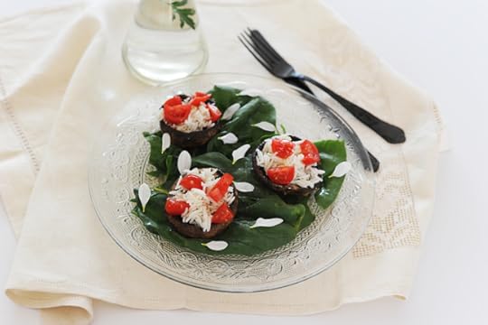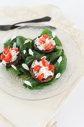 Ho lavato gli champignon per bene e li ho privati del gambo. Li ho poggiati su carta da forno e spennellati con salsa di soia. Ho tagliato a pezzetti l’alga nori e l’ho sparsa sopra. In forno a 180 fin quando si sono cotti. Non eccessivamente per��. Giusto il tempo di ammorbidirli ma lasciarli comunque croccanti. Ho cotto il riso basmati in acqua bollente a cui ho aggiunto un cucchiaino generoso di t�� matcha. Ne ho aggiunto giusto un altro pizzico dopo aver scolato il riso ancora caldissimo. Ho poggiato il riso sopra i funghi ancora caldi e servito con del pomodoro pi�� per una questione estetica che altro (mi avete scoperto! Li ho tolti! Non li ho mangiati! Tana per iaia! Uff).